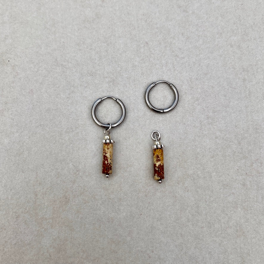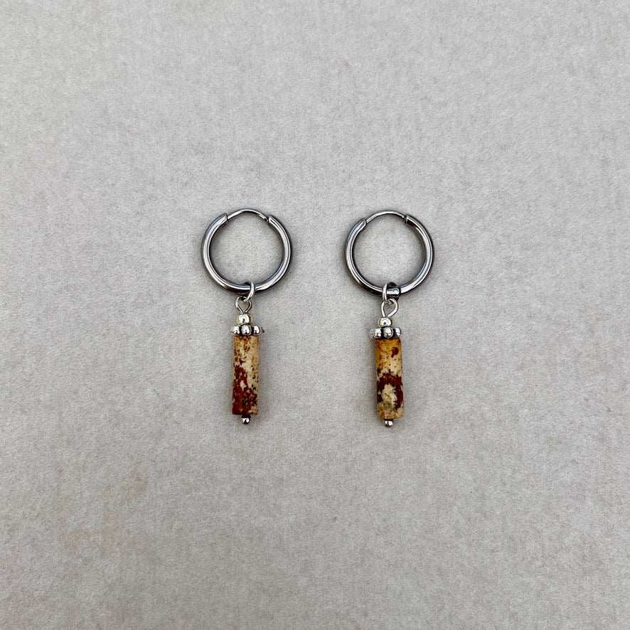 Qasur sind schöne handgemachte Kreolen aus Edelstahl mit Anhänger aus eckigen stabähnlichen Natursteinen. Bei Natursteinen können die Farben vom Bild abweichen, da es sich um ein Naturprodukt handelt und jeder Stein anders ist. Daher ist jeder Ohrring ein Unikat.