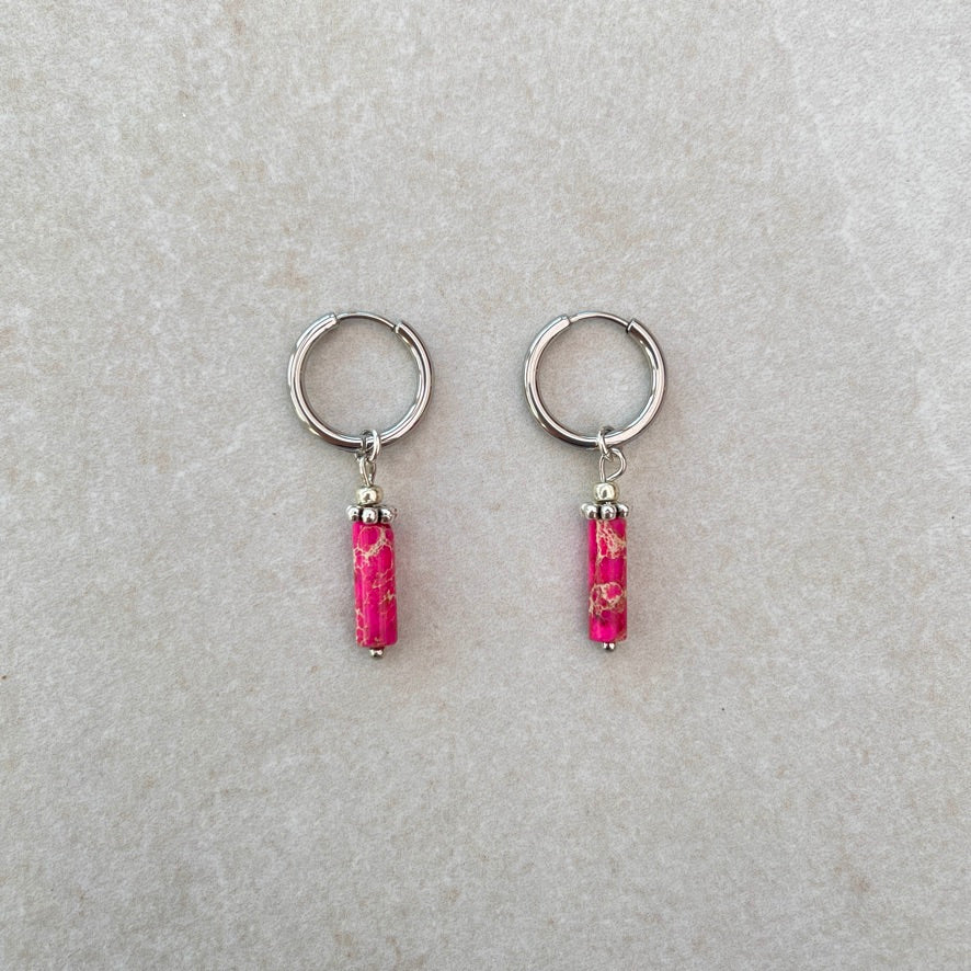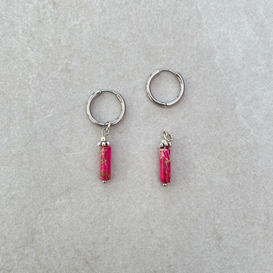 Tulkarm sind schöne handgemachte Kreolen aus Edelstahl mit Anhänger aus runden stabähnlichen Natursteinen. Bei Natursteinen können die Farben vom Bild abweichen, da es sich um Naturprodukt handelt und jeder Stein anders ist. Daher ist jeder Ohrring ein Unikat.